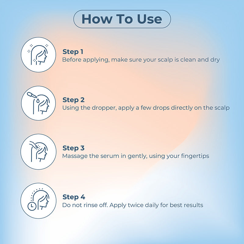 Use the dropper to apply a few drops on a clean, dry scalp and massage gently.